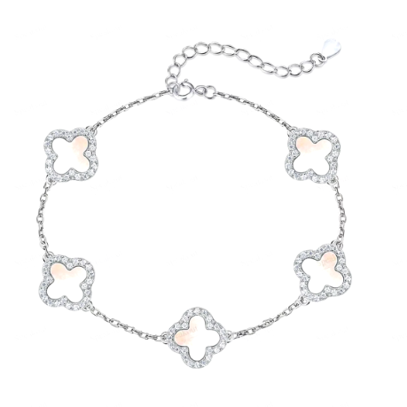 925 Sterling Silver Four Leaf Pearl Clover Bracelet