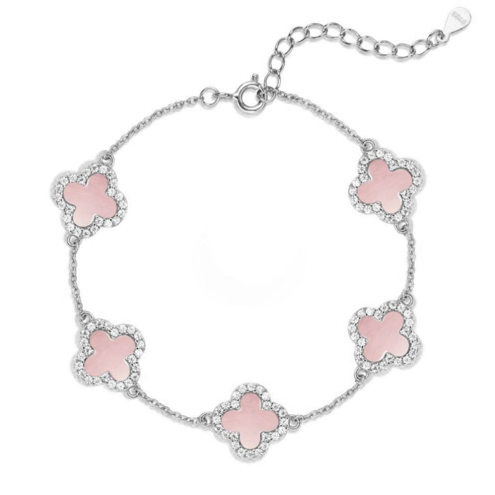Premium Silber Eismatt Roségold Kleeblatt Armband