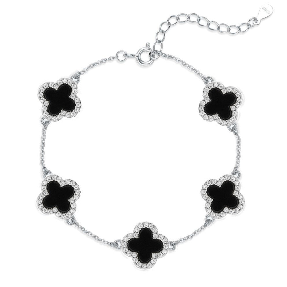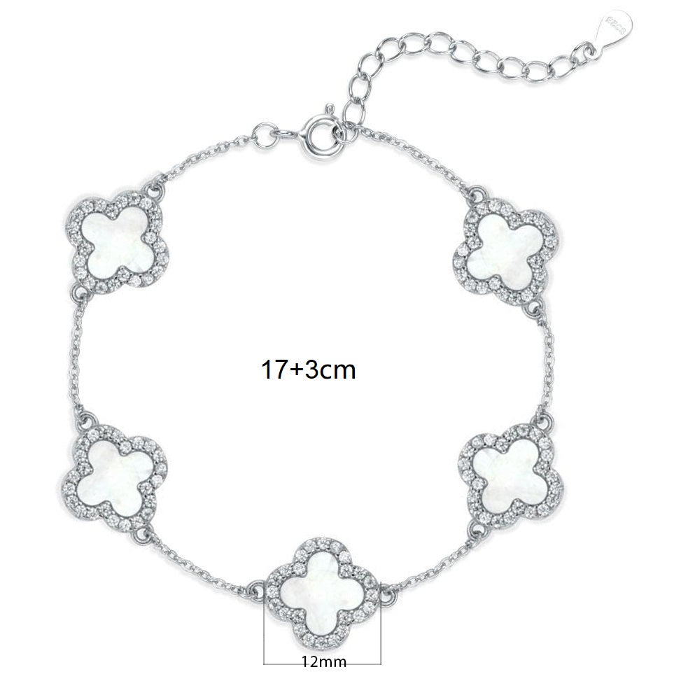 925 Sterlingsilber Vierblättriges Kleeblatt Diamantblitz Zirkonia Armband