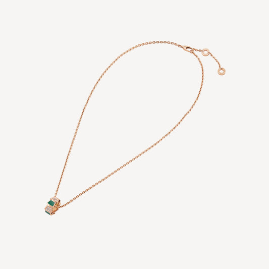 Serpenti Necklace, 925 Silver, 18K Rose Gold Plated, Green Agate