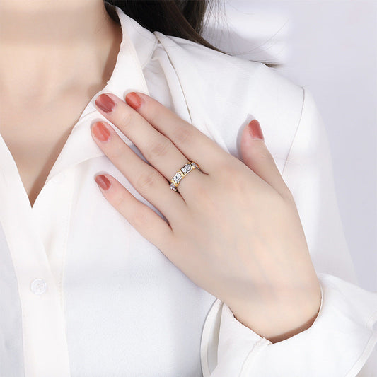 Geometric Shape Ring, 925 Silver with Sparkling Cubic Zirconia