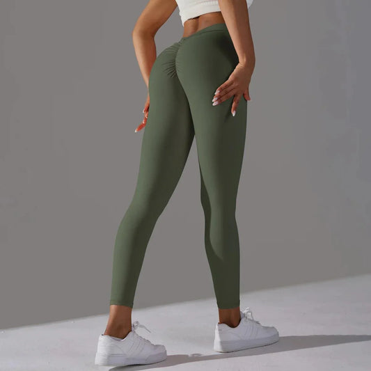 Leggings Sexy de Cintura en V Push Up para Mujer Leggings de Fitness Sensación Desnuda Pantalones de Yoga