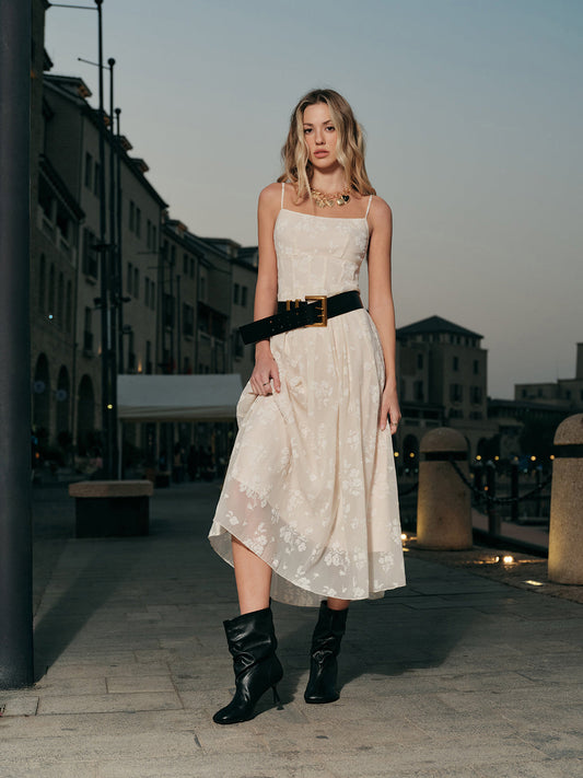 Vestido halter con detalle de ojo de cerradura y estampado floral
