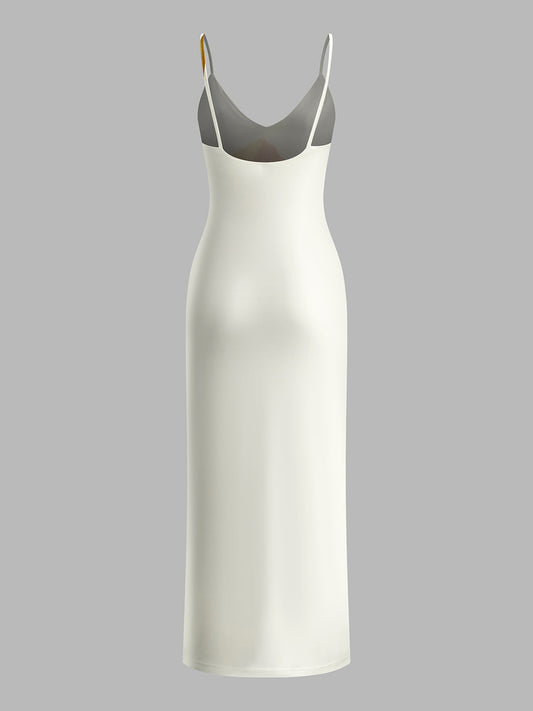 Felicia – Vestido maxi de verano para mujer con escote en V y costuras de color
