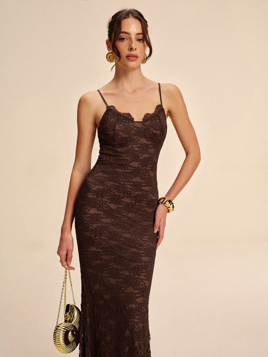 Vestido largo cruzado con espalda de satén y cuello cisne