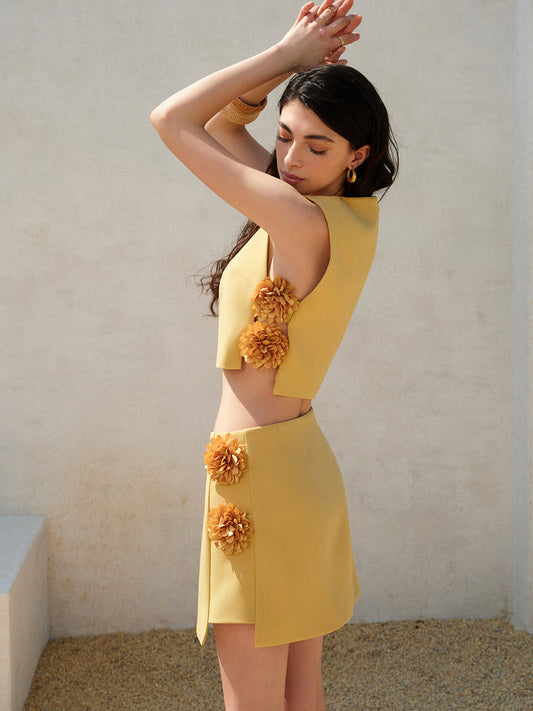 Pantalones de vestir de pierna ancha con botones y capa asimétrica