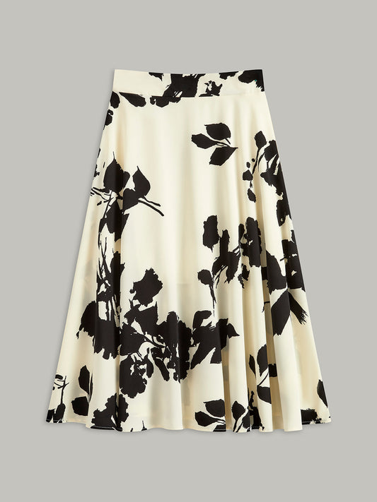 Falda midi plisada de gasa con parche asimétrico de cuero sintético