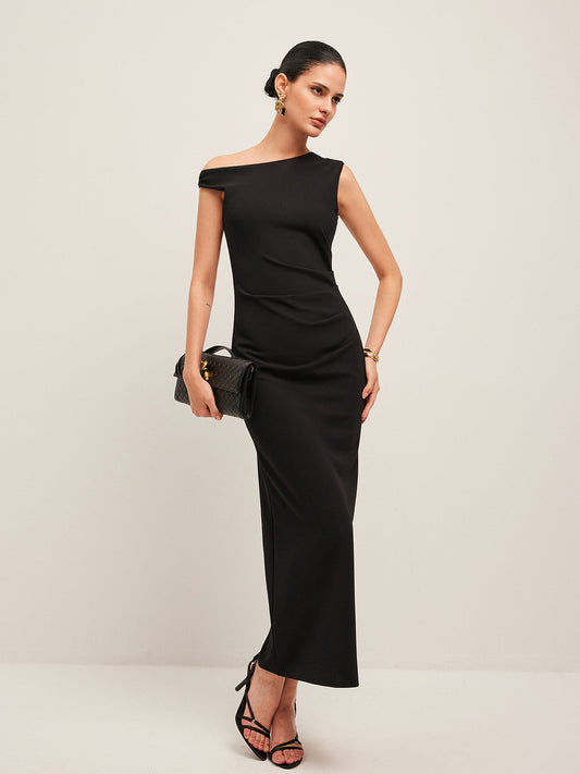 Amaris - Vestido de satén para mujer con un hombro, plisado y abertura