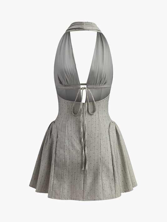 Vestido plisado con tirantes de espagueti y espalda descubierta