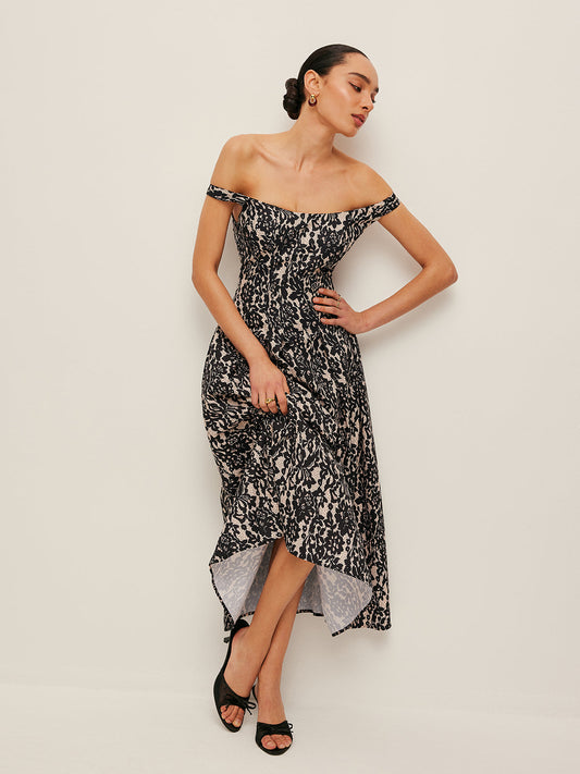 Vestido con estampado floral y hombros descubiertos