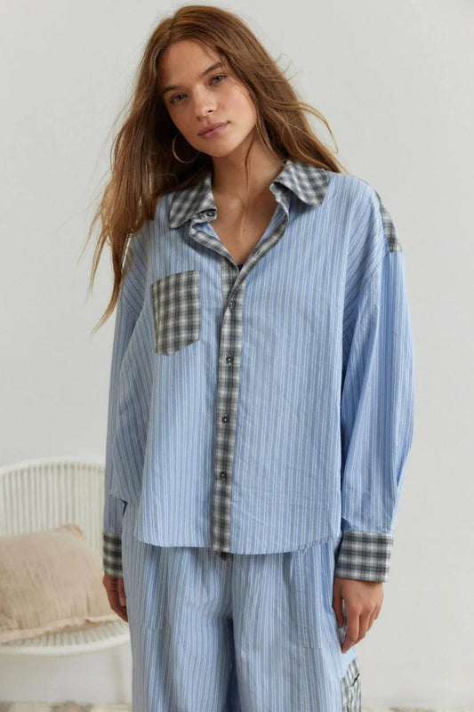 Conjunto de pijama de dos piezas para mujer con patrón de cuadros