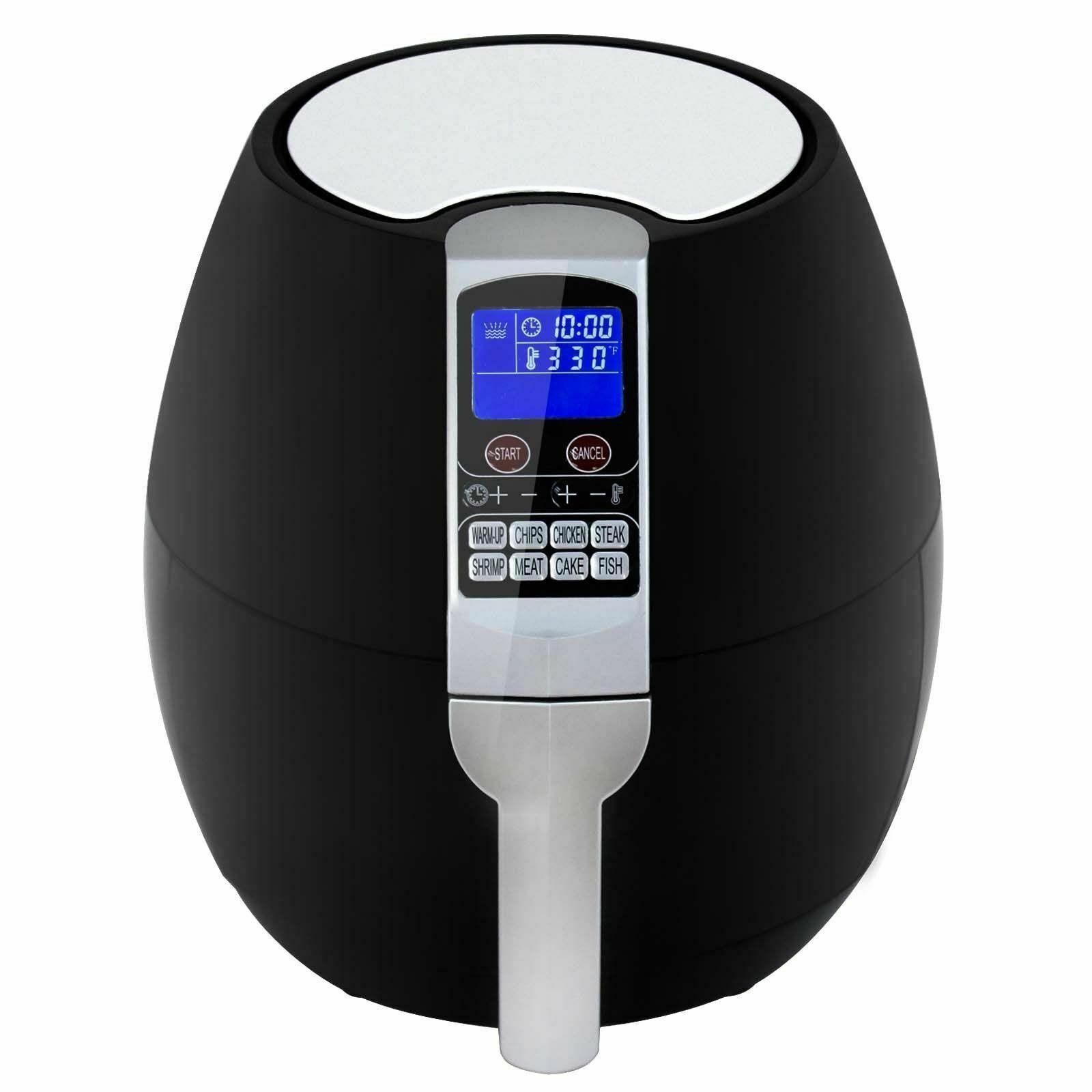 Con una gran capacidad de 3.7 cuartos, esta potente freidora de aire cocina comidas para toda la familia rápidamente con un tiempo mínimo de precalentamiento. La fácil pantalla LCD te permite seleccionar entre 8 modos de cocción preestablecidos incluyendo Calentar, Papas fritas, Pollo, Camarones, Carne, Pastel y Pescado, asegurando resultados deliciosos cada vez.