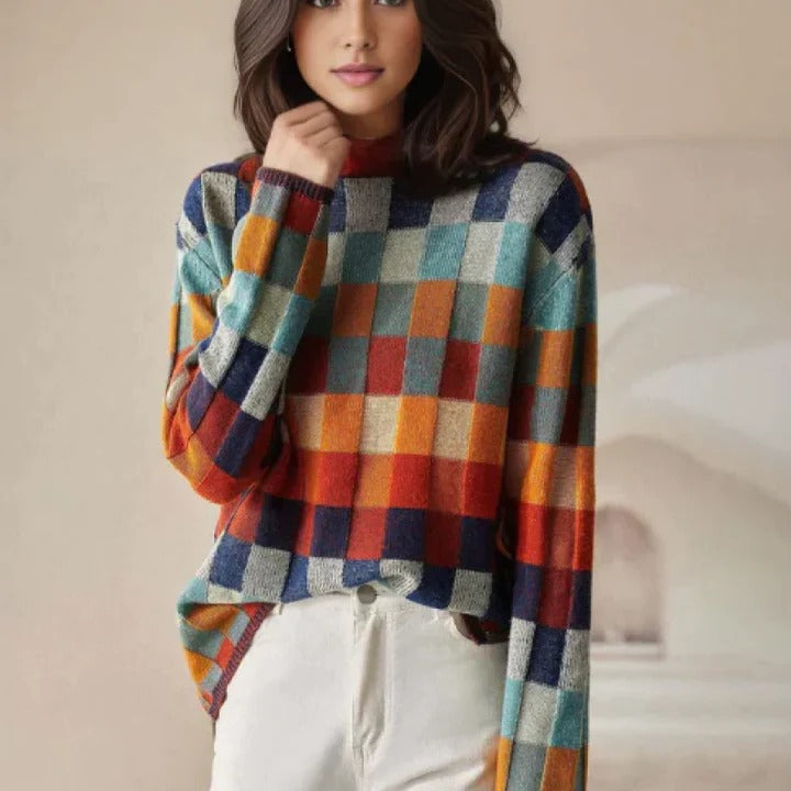 Este suéter de corte relajado presenta un estampado abstracto en toda la superficie y un clásico cuello redondo. Las mangas largas y los bordes acanalados ayudan a mantener la forma, mientras que la tela es adecuada para superponer en condiciones más frescas.