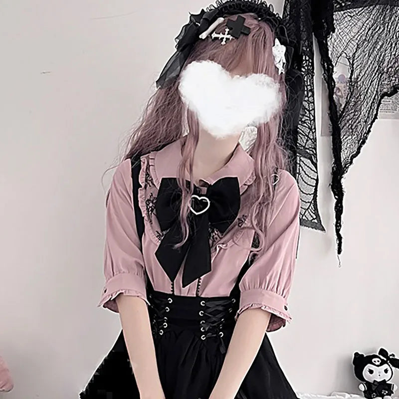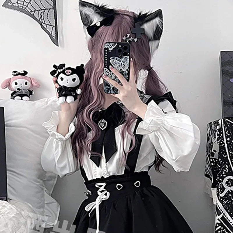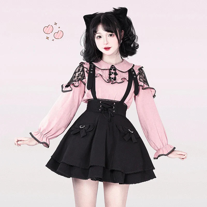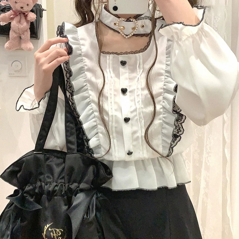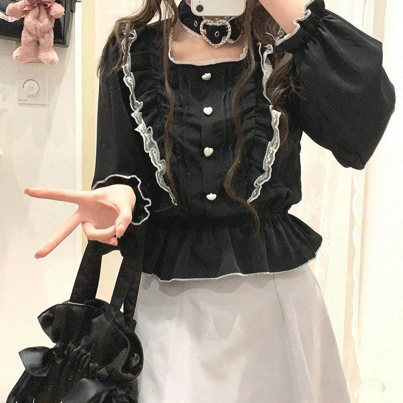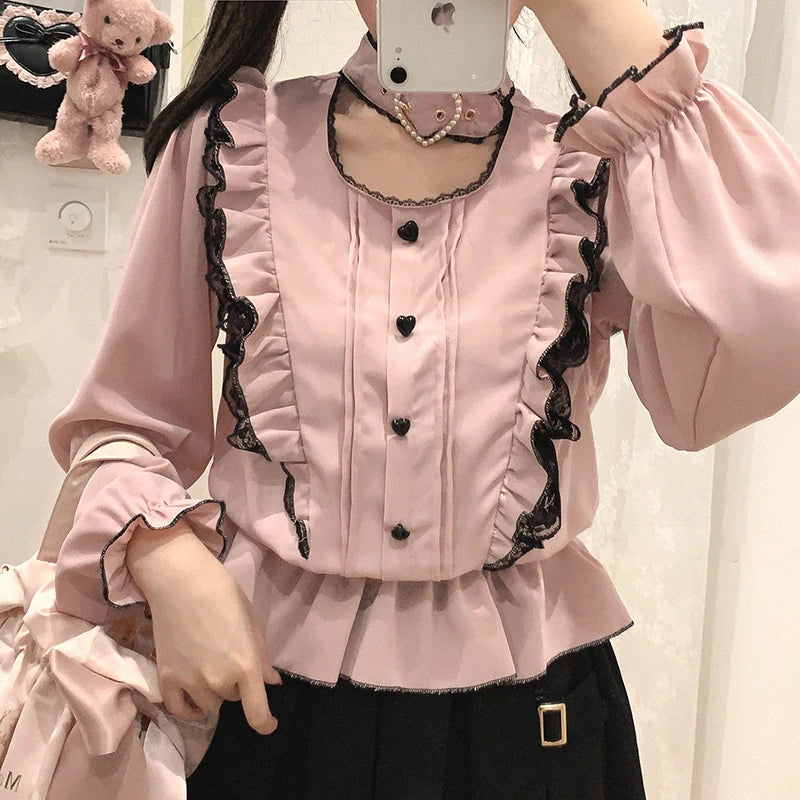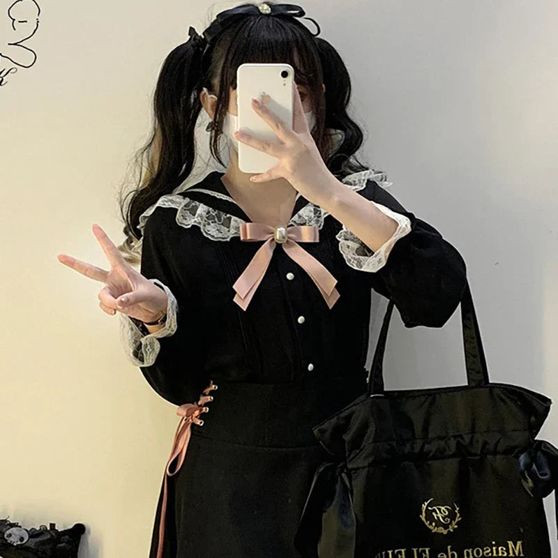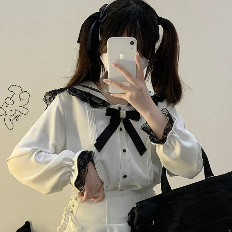 Blusa linda estilo japonés Jirai elegante de manga larga dulce
