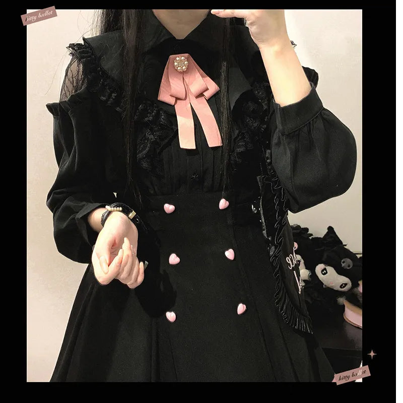Prueba nuestra linda blusa estilo japonés Jirai, con una tela mezclada para un calor medio y un ligero estiramiento para mayor comodidad. Con una elegante decoración de lazo y cierre de un solo pecho, esta blusa de color sólido añade un toque de dulzura a cualquier atuendo. Perfecta para cosplay y ocasiones casuales, viene en un ajuste regular y tiene mangas largas y hermosas completas.