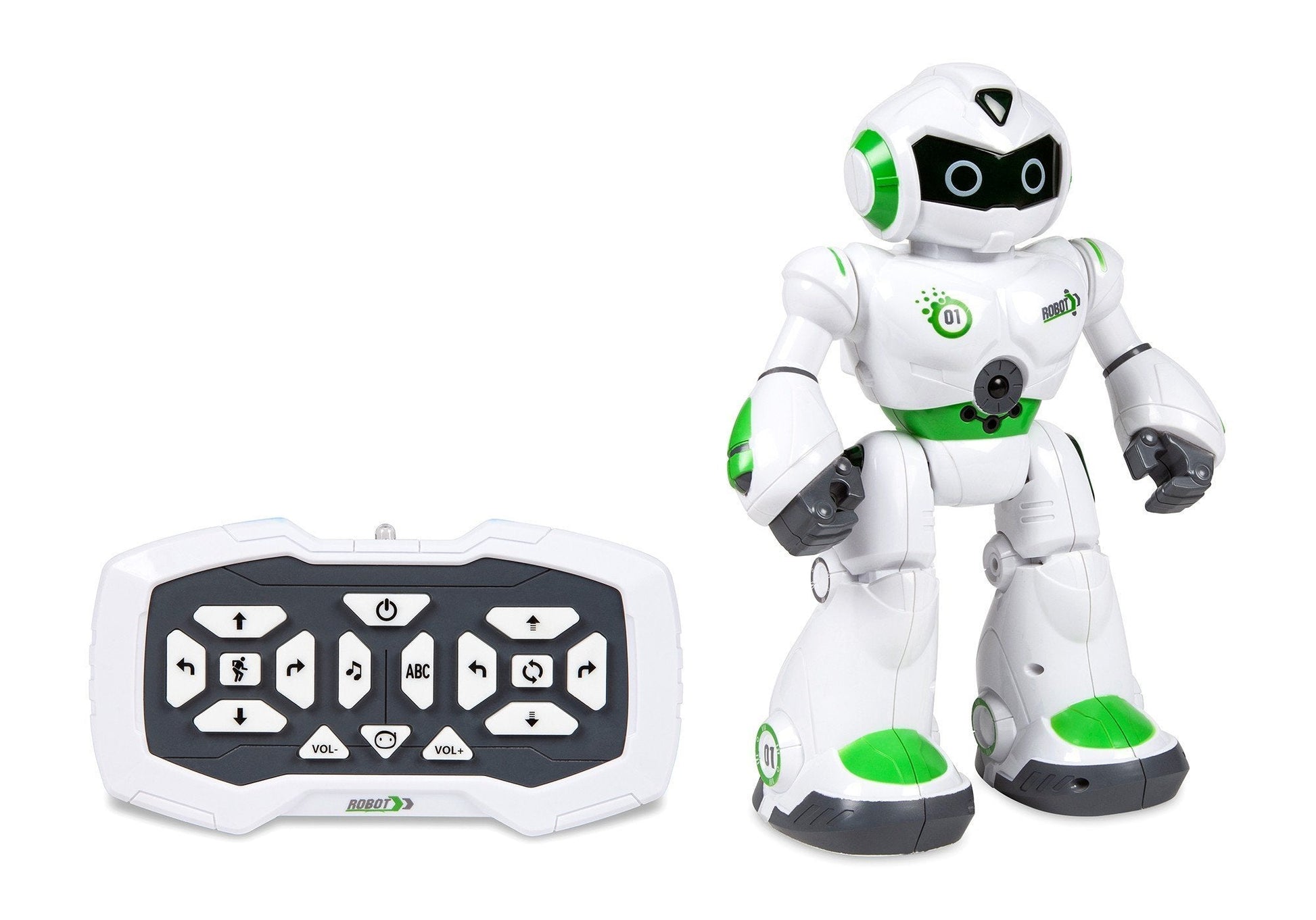 Características: Construcción duradera de polímero con alimentación eléctrica Control por transmisor IR Movimiento de 360 grados Control por gestos Efectos de sonido Luces LED intermitentes Para mayores de 6 años Lanzador con resorte y misil incluido: World Tech Toys Intelli Bot RTR Robot eléctrico IR RC Transmisor Escudo del robot Lanzador con resorte Misil lanzador Especificaciones: Longitud: 3.75 pulgadas Ancho: 7.75 pulgadas Altura: 10.5 pulgadas Requisitos de batería: Robot: 3 pilas AA (no incluidas) Transmisor: 2 pilas AA (no incluidas)
