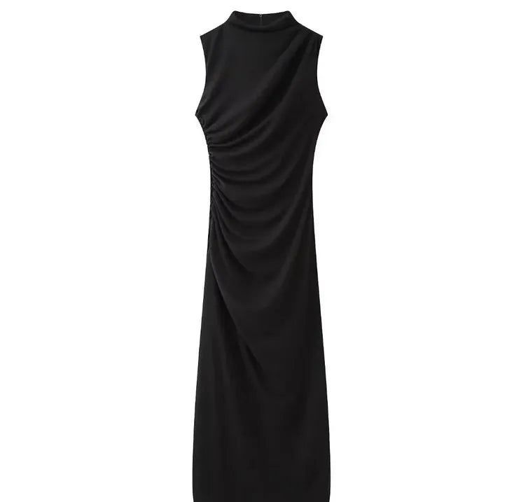 Descubre el equilibrio perfecto entre elegancia y comodidad con nuestro Vestido Midi Ajustado de Cuello Redondo Negro de Moda. Confeccionado con una tela de punto elástica, este vestido presenta una silueta entallada y un favorecedor escote redondo. El vestido también cuenta con una sexy abertura trasera y un diseño sin mangas, lo que lo hace perfecto para cualquier ocasión casual. Experimenta lo mejor de ambos mundos con nuestro vestido elegante y cómodo.