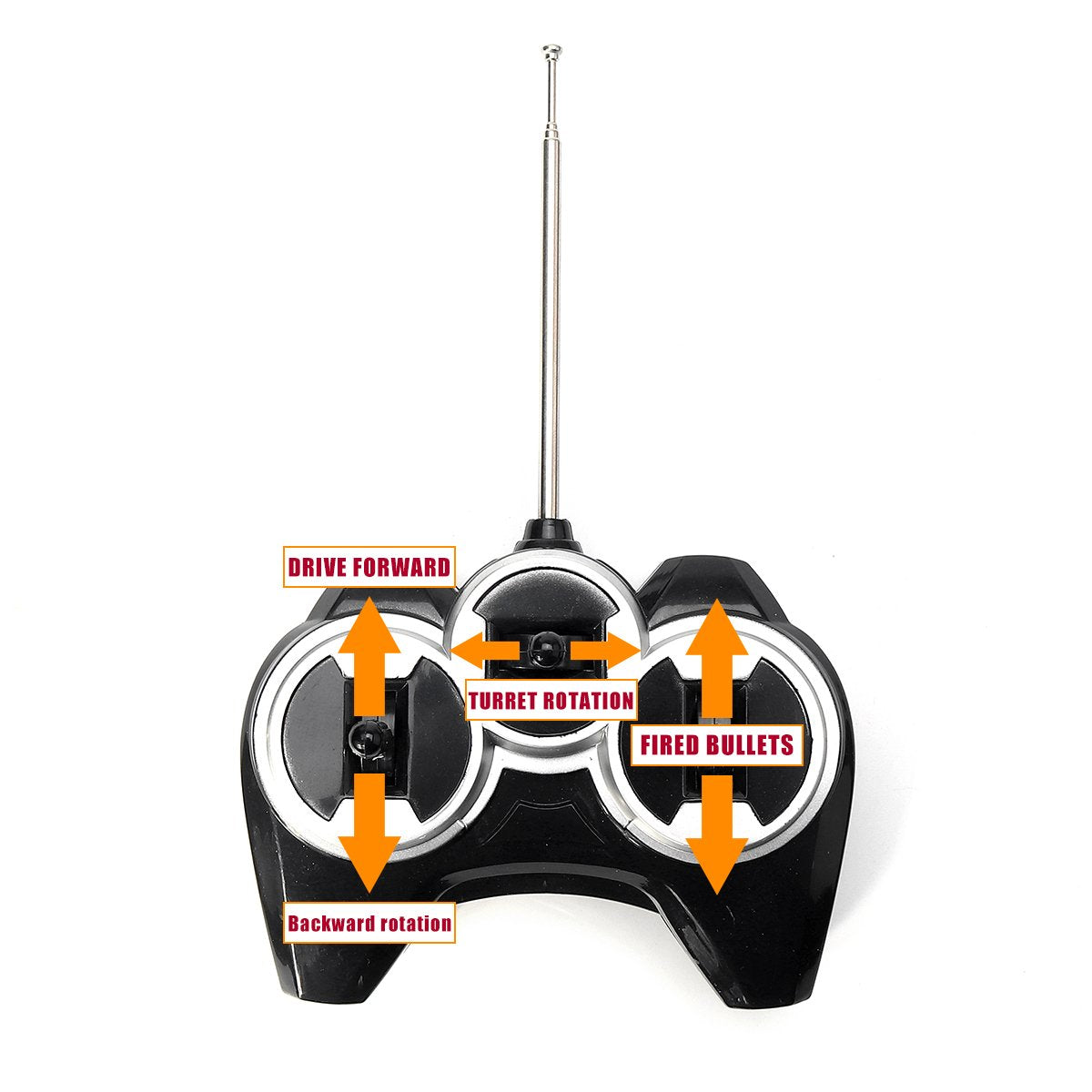 Función: Avanzar/retroceder, girar a la izquierda/derecha; La torreta gira a la izquierda/derecha; El cañón dispara balas