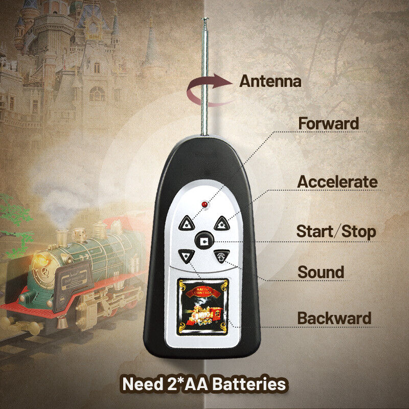 Elaborado con atención al detalle, este set de tren combina un diseño retro con la comodidad de la funcionalidad de control remoto, permitiéndote dirigir el tren sin esfuerzo sobre sus vías. Con sus características cuidadosamente diseñadas y su intrincada artesanía, este set de juguetes promete un viaje encantador a través de los reinos del juego atemporal.