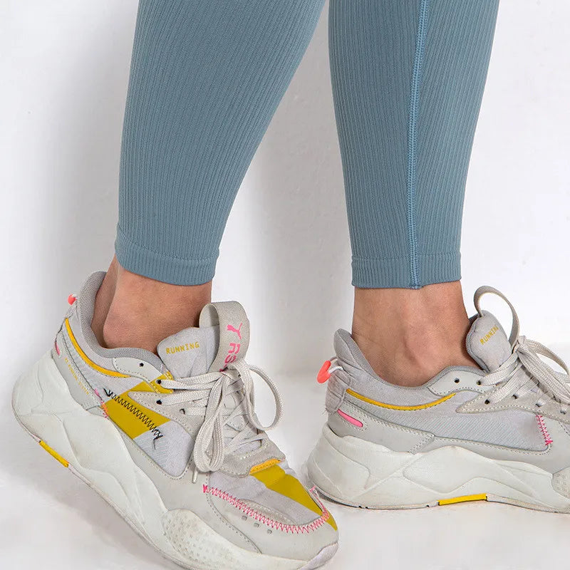 Los Pantalones de Yoga Fitness Sin Costuras de Cintura Alta con Control de Abdomen utilizan tecnología avanzada de tejido sin costuras y están fabricados con un material súper elástico con estiramiento en cuatro direcciones para máximo confort y flexibilidad.