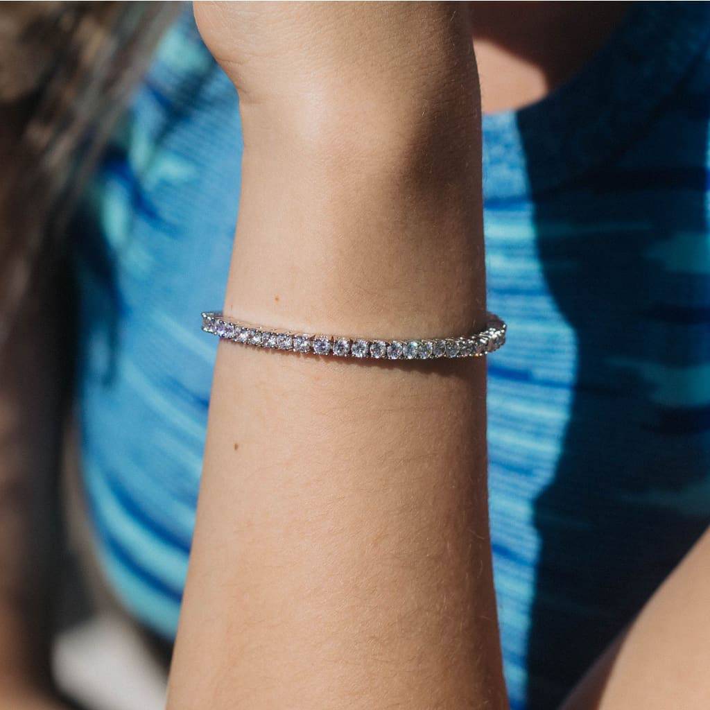 Para un aspecto refinado y discreto, esta pulsera de tenis de corte redondo de 3mm ofrece un giro elegante al diseño clásico de 5mm. Con piedras más pequeñas para una elegancia sutil mientras mantiene el mismo brillo radiante, es la pieza perfecta para mejorar cualquier atuendo.
