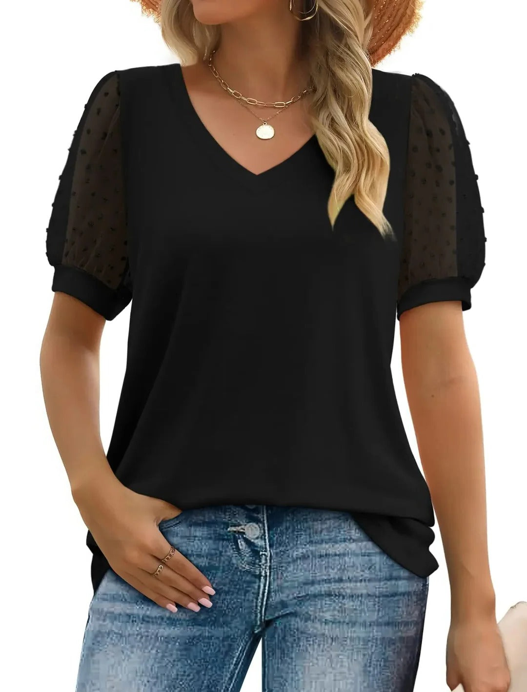 - Top de manga corta con escote en V