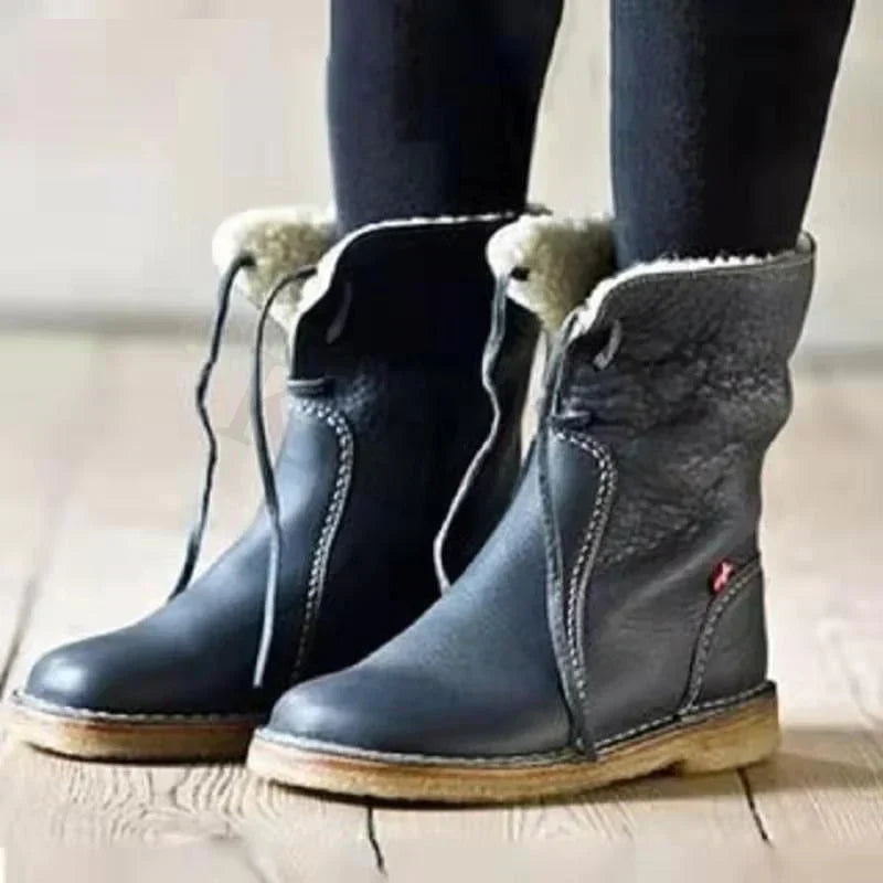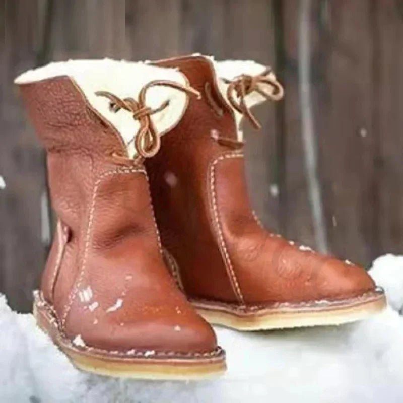 Botas de nieve de invierno para mujer de PU cálidas con cordones de encaje
