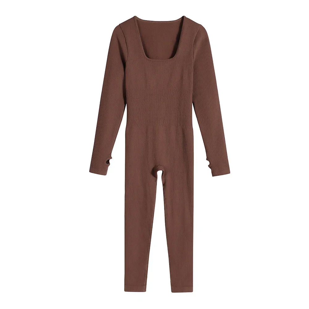 Elaborado expertamente con nylon de alta calidad, este mono de yoga para mujer es perfecto para yoga o cualquier otro tipo de entrenamiento. Con mangas largas acanaladas, un escote cuadrado y un ajuste ceñido y elástico, este mono ofrece máxima comodidad y transpirabilidad. Su color sólido y propiedades térmicas proporcionan estilo y calidez.