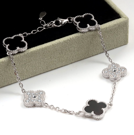 925 Sterling Silver Diamond Flash Clover Bracelet