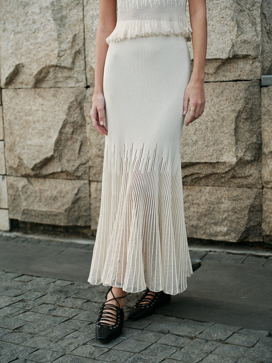 Mesh Panel Pleated Skirt