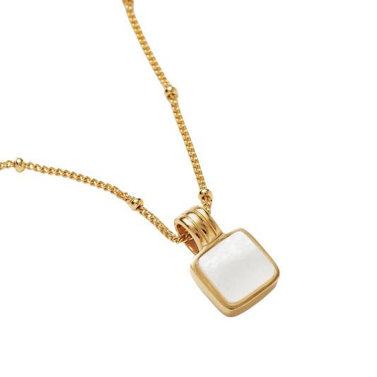 Square Mother of Pearl Necklace, 925 Silver, 18K Gold Plated