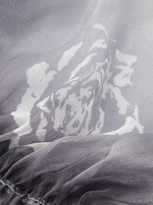 Floral Detail Sheer Cold-Shoulder Top