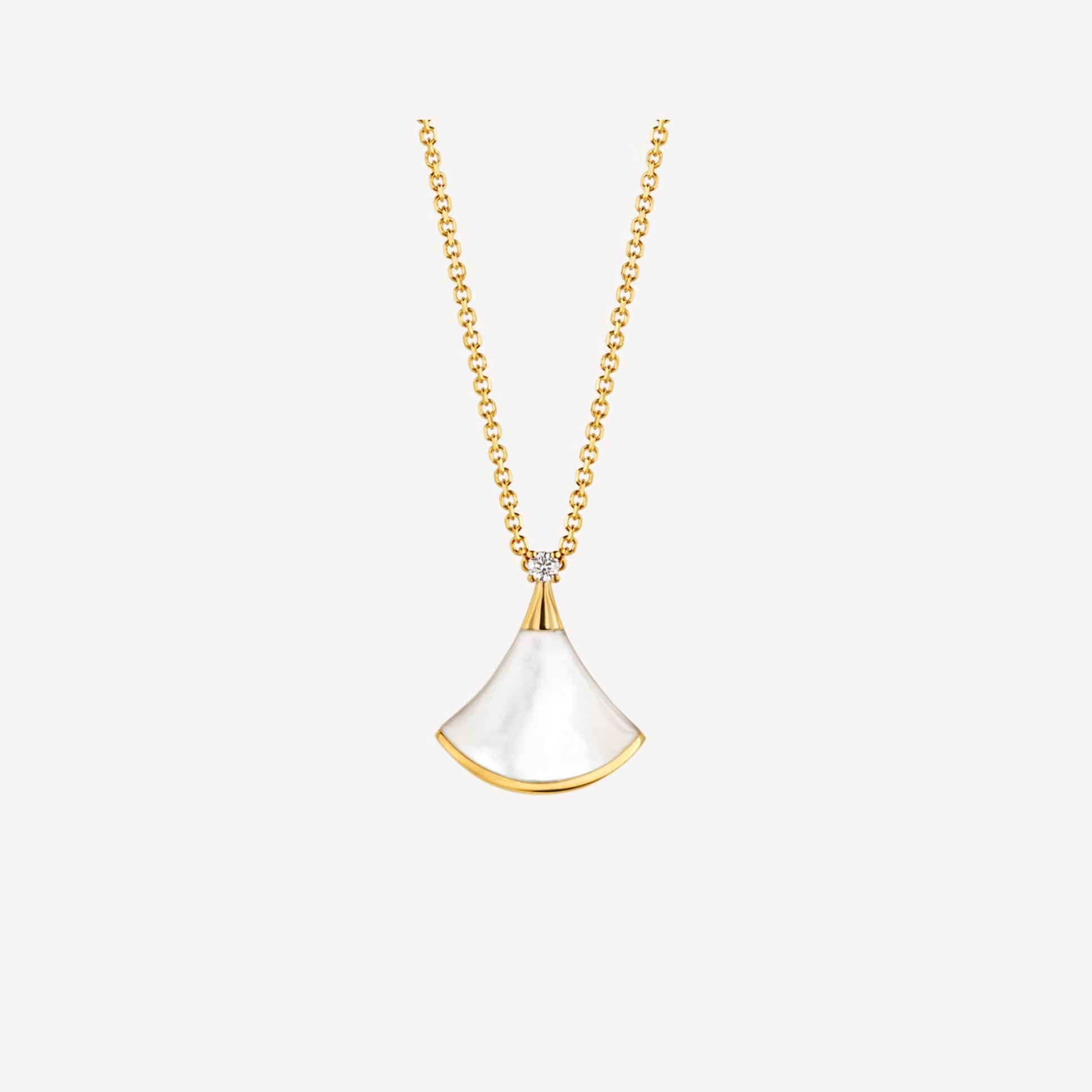 This handcrafted necklace combines sparkling Cubic Zircon with elegant Mother of Pearl. Made from 925 silver with dual 18K gold and rose gold plating, finished with PVD 5x layering for durability. Adjustable chain length: 16–17 inches.