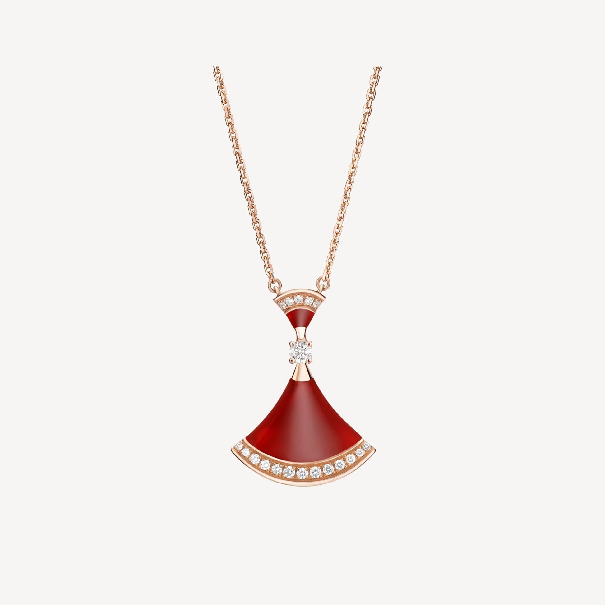 This handcrafted necklace features sparkling Cubic Zircon and Red Agate stones set in 925 silver, plated with 18K rose gold using a PVD 5x layering process. The adjustable chain length of 16–17 inches allows for versatile styling.