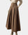 The design focuses on simplicity and proportion, with subtle detailing that contributes to its polished appearance without introducing unnecessary ornamentation. The skirt’s length falls around mid-calf, providing appropriate coverage for a range of environments including office settings, casual meetups, and daytime events.