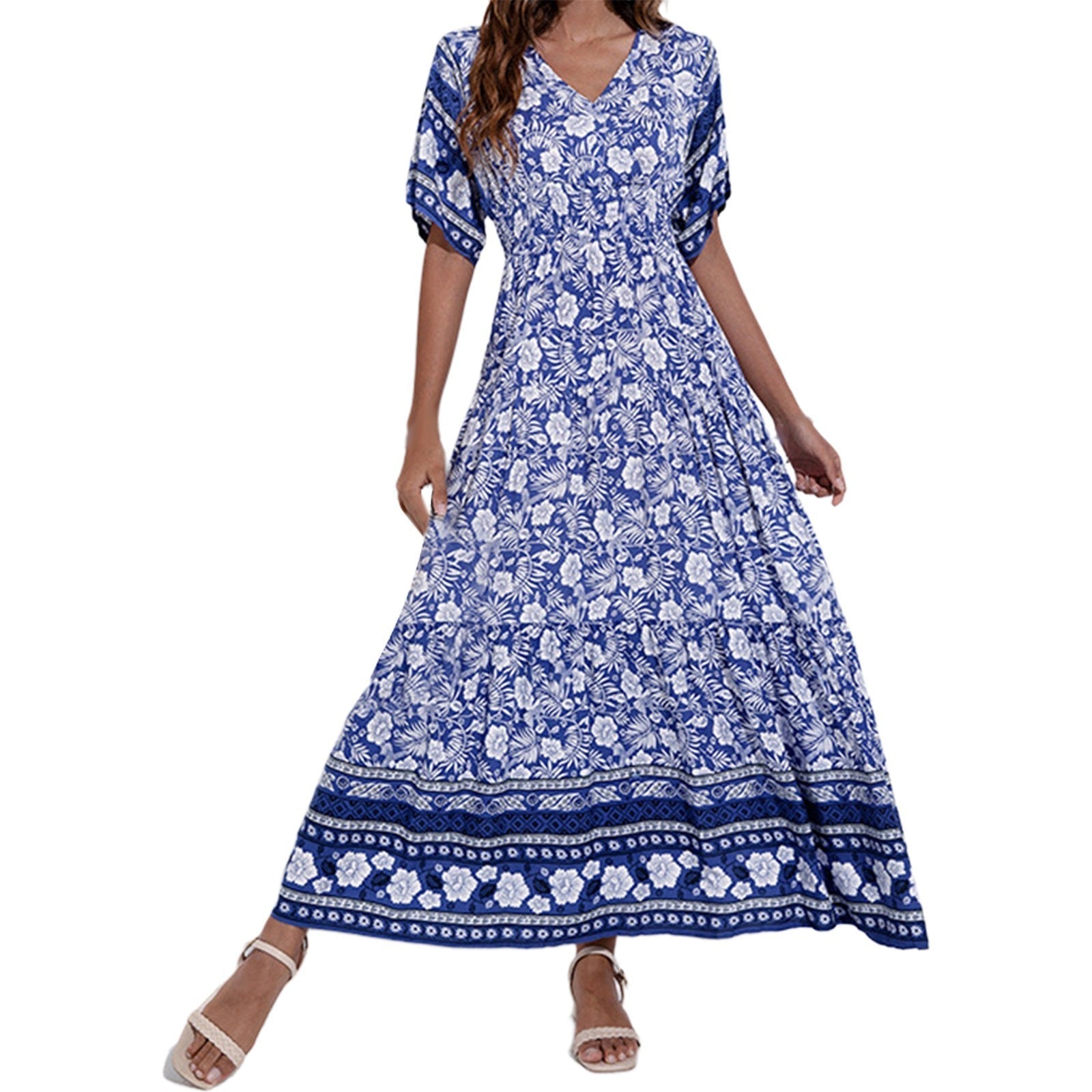 Isabelle – Bohemian Floral V-Neck Beach Maxi Dress For Women