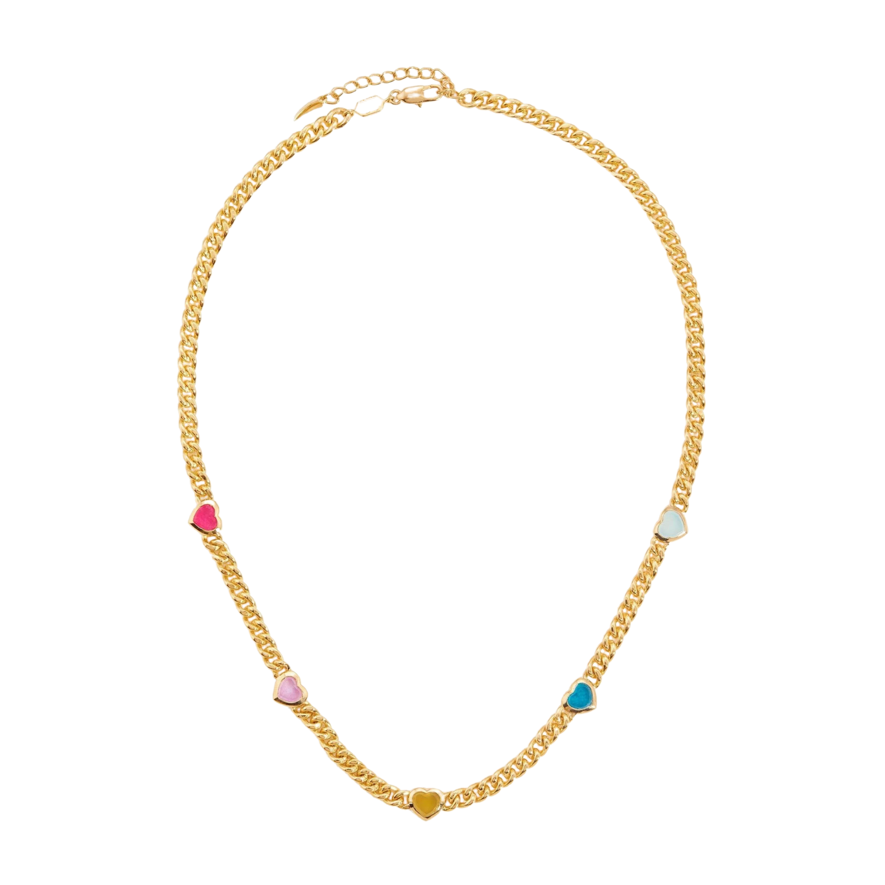 Add a pop of color to your layered looks with this vintage-inspired necklace. Featuring five jelly heart pendants, it can be worn stacked with other necklaces or on its own for a playful, chic style.