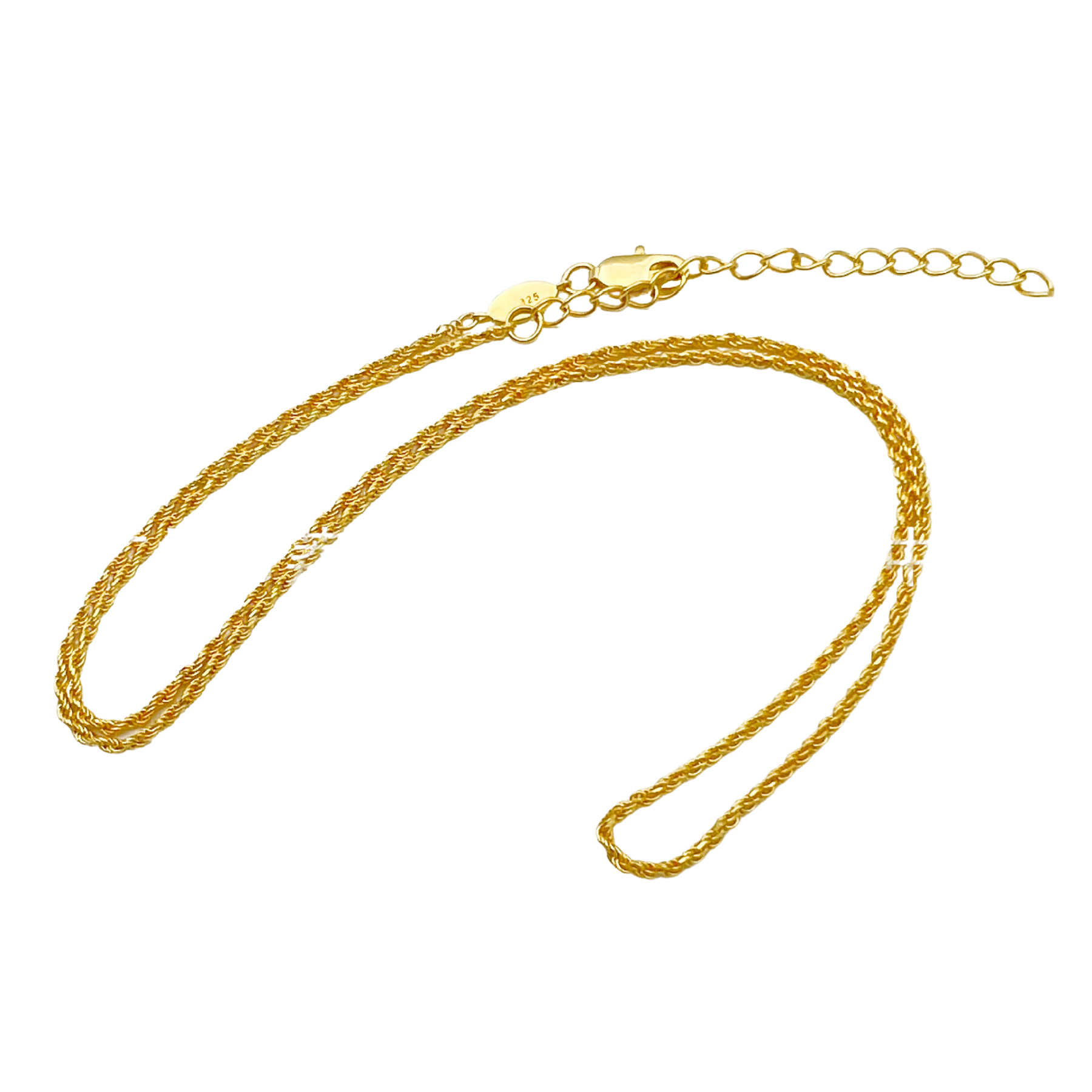 Rope Chain Necklace, 925 Silver, 18K Gold Plated