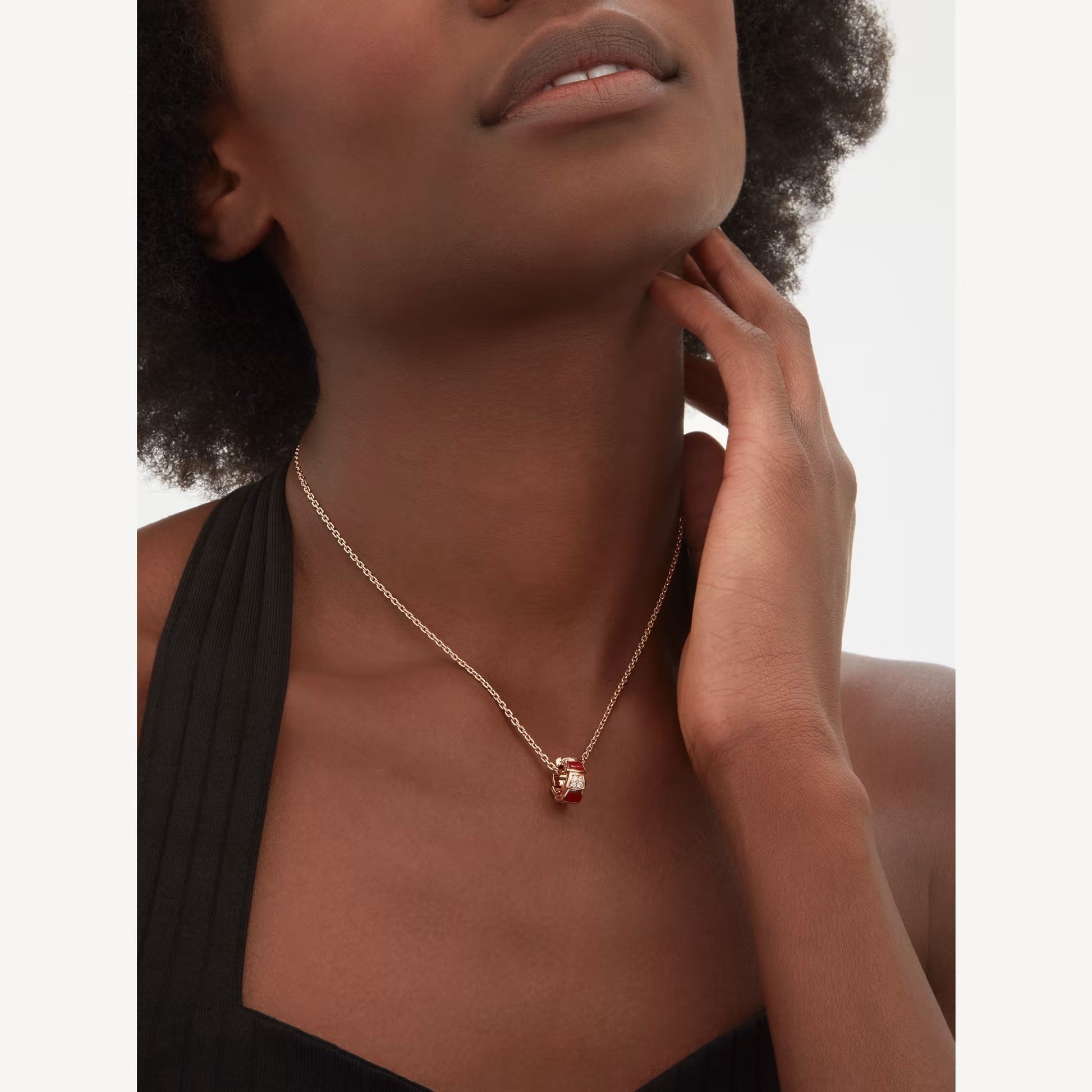 Serpenti Necklace, 925 Silver, 18K Rose Gold Plated, Red Agate