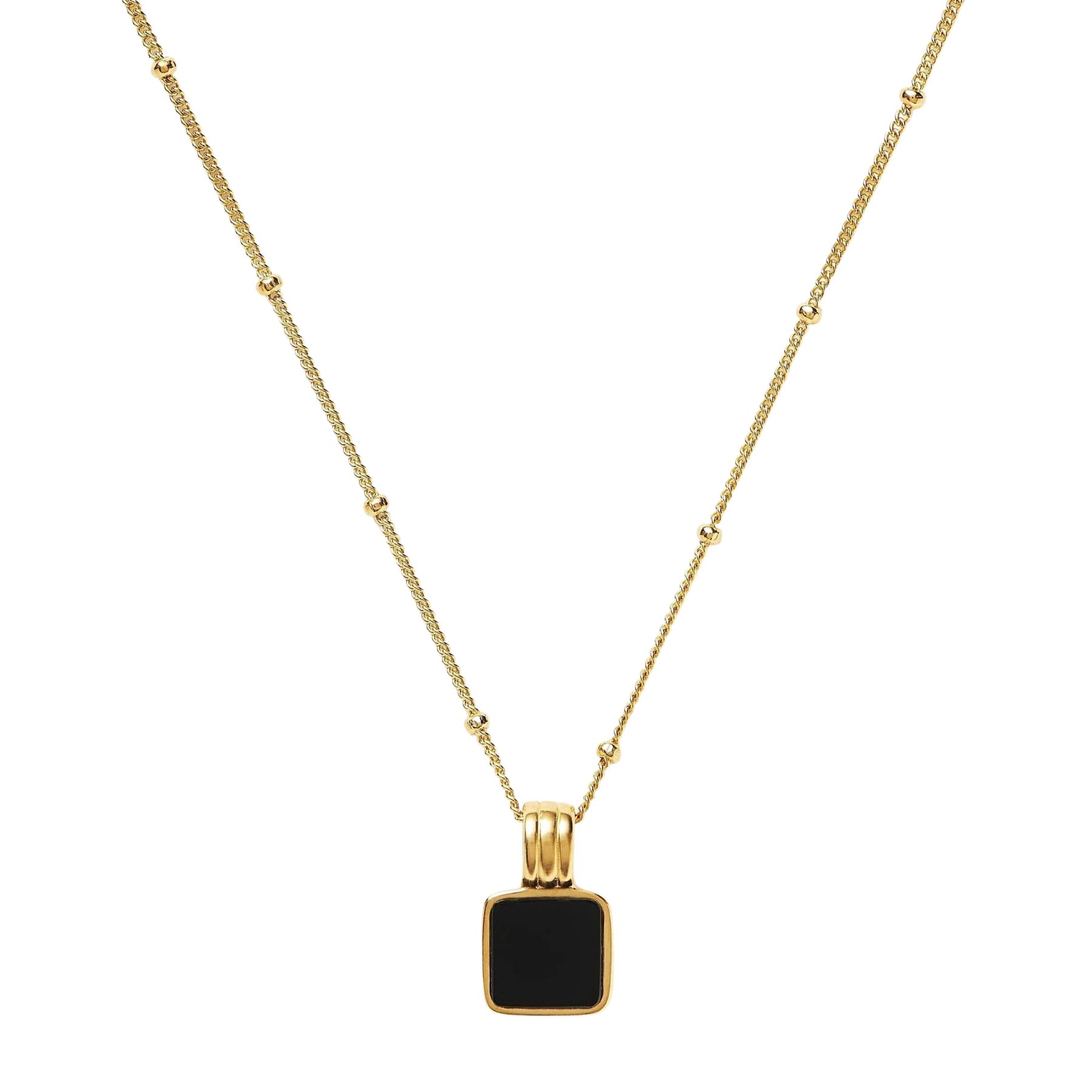 Square Onyx Necklace – 18K Gold Plated | Chain Length: 18.9 + 2.1 inches