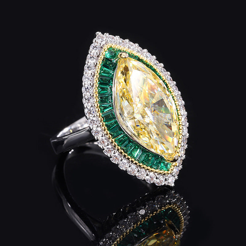 Add a touch of sophistication to your look with this Tear Eye Ring, crafted from 925 sterling silver and inlaid with sparkling imitation diamonds and high-carbon yellow diamonds. Its contemporary design and elegant teardrop shape create a striking statement piece suitable for both daily wear and special occasions.