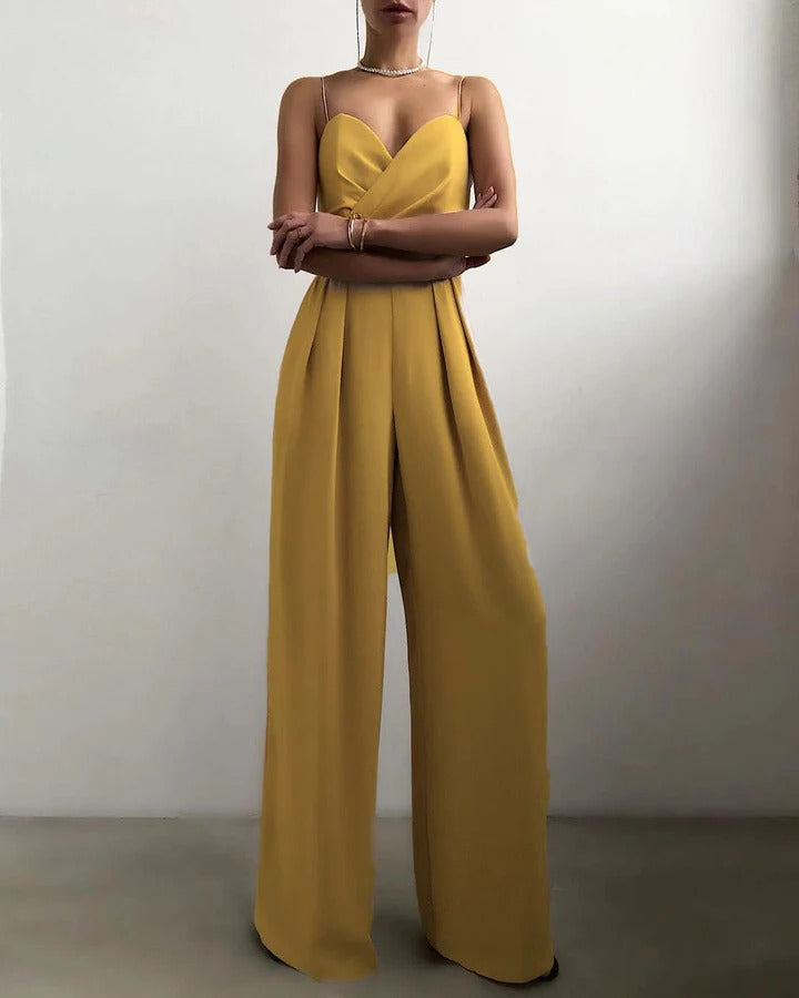 The jumpsuit format simplifies outfit planning, offering a complete upper and lower look in a single garment.