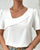 This blouse features a distinctive asymmetrical neckline and shaped puff sleeves. The cut provides defined structure suitable for transitional and warm-weather outfits. Its neutral appearance allows for a wide range of styling combinations across casual and semi-formal settings.